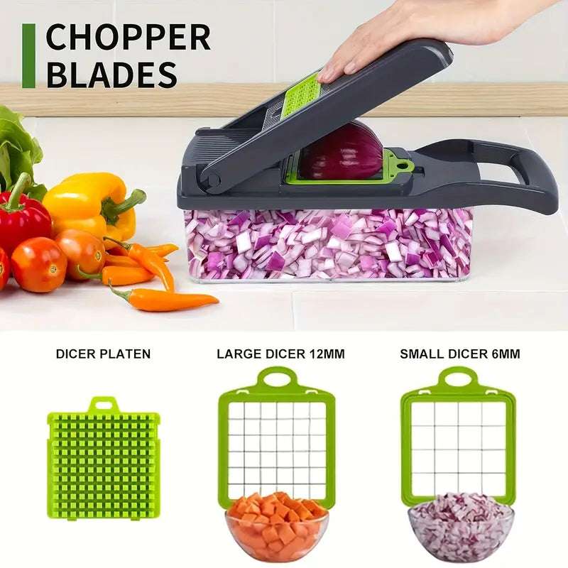 16-in-1 Multifunctional Vegetable Chopper - Manual Food Slicer Dicer with Container, Kitchen Veggie Cutter for Onion, Carrot, Garlic