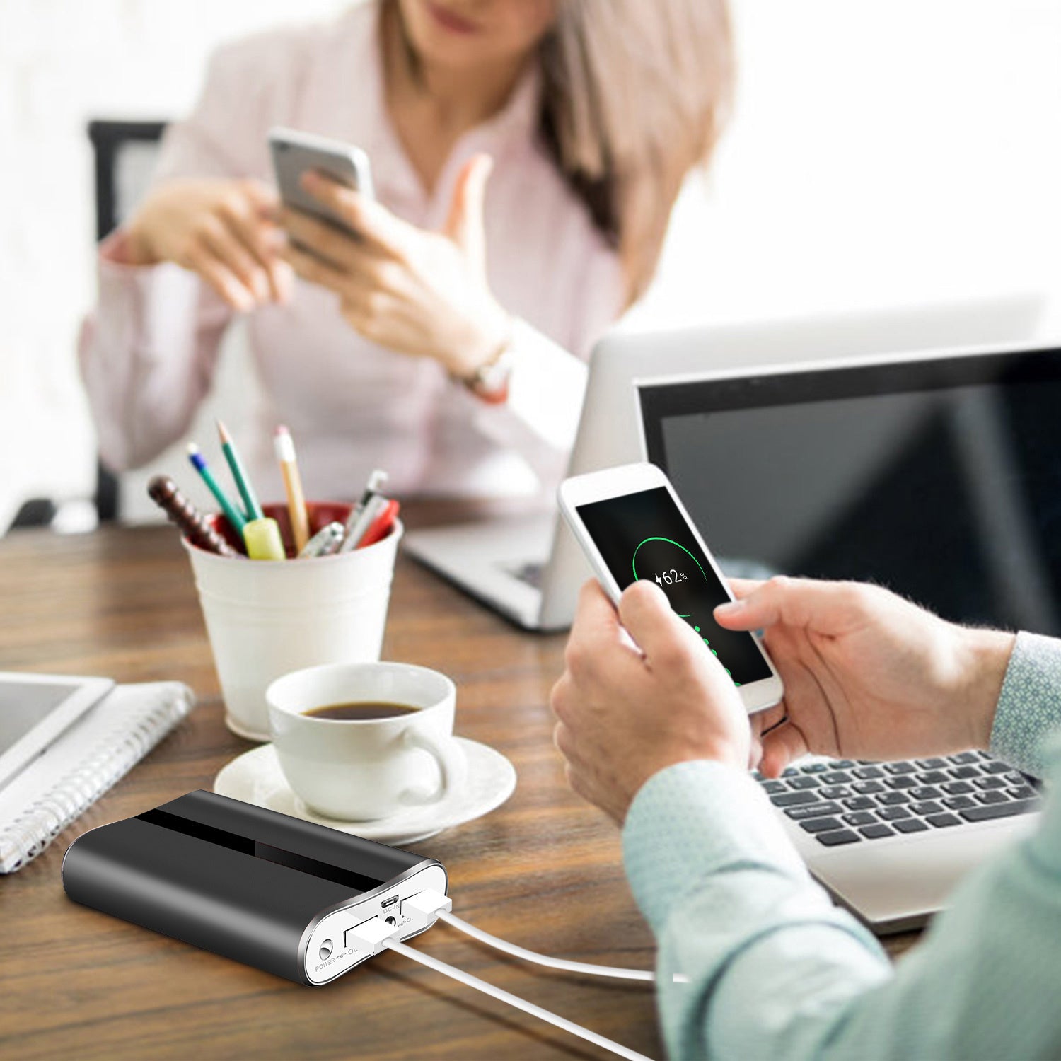 **Well-Designed*:The portable charger’s ergonomic curved edge offers a comfortable grip and a stylish look,while the clear LED indicator clearly displays remaining power. All 2 ports are located together for convenience use and to minimize wire tangling.