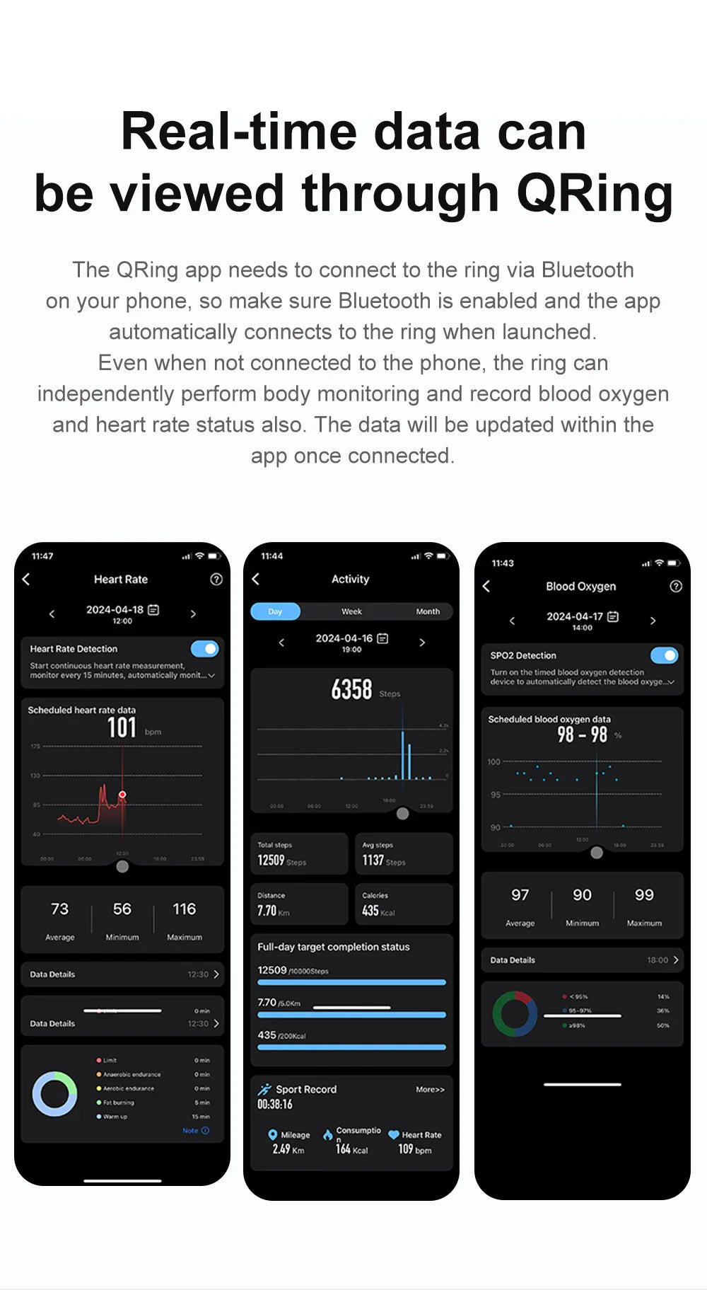 3. How to start: Charge the ring with the included charging cable. The heart rate light will light up to indicate successful startup. Then you can use the APP Qring to connect the ring.