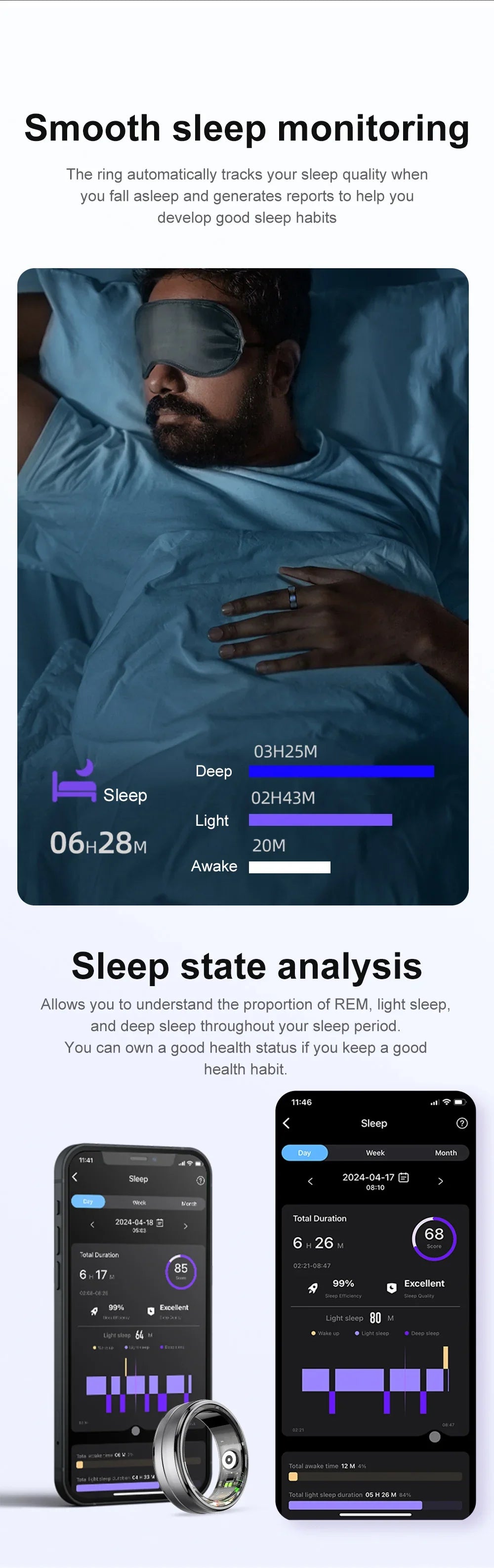 Men Women Heart Rate Blood Oxygen Monitor Waterproof Smart Ring
