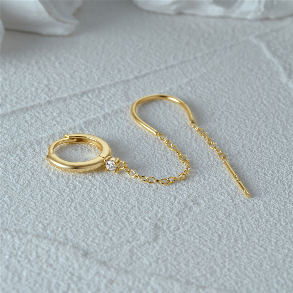 S925 Sterling Silver Diamond Flower Tassel Chain Earring Ear Clip Stud Earrings