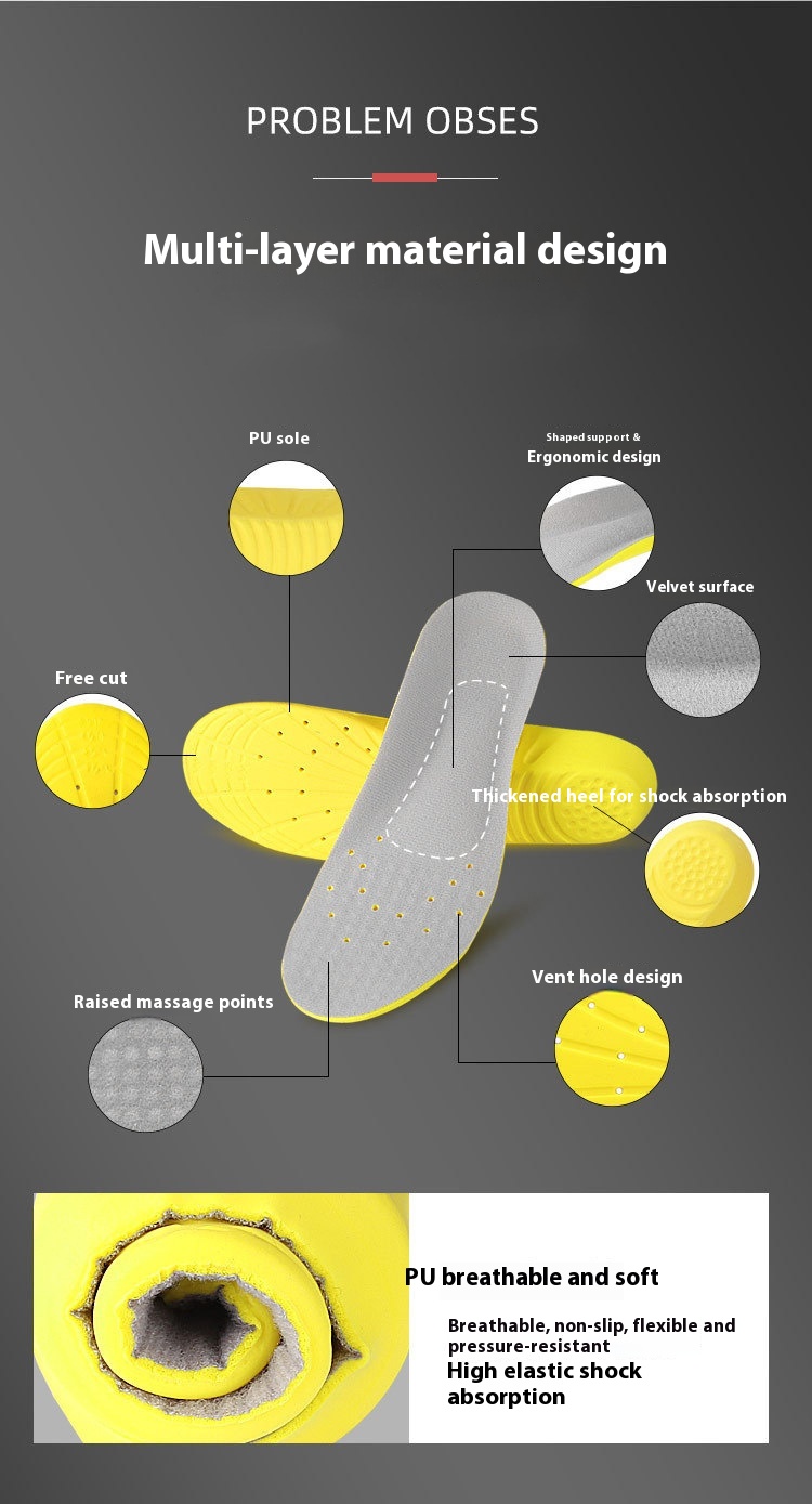 Sports Insole Men And Women Shock Absorption Thickened Slow Rebound Sweat Insole